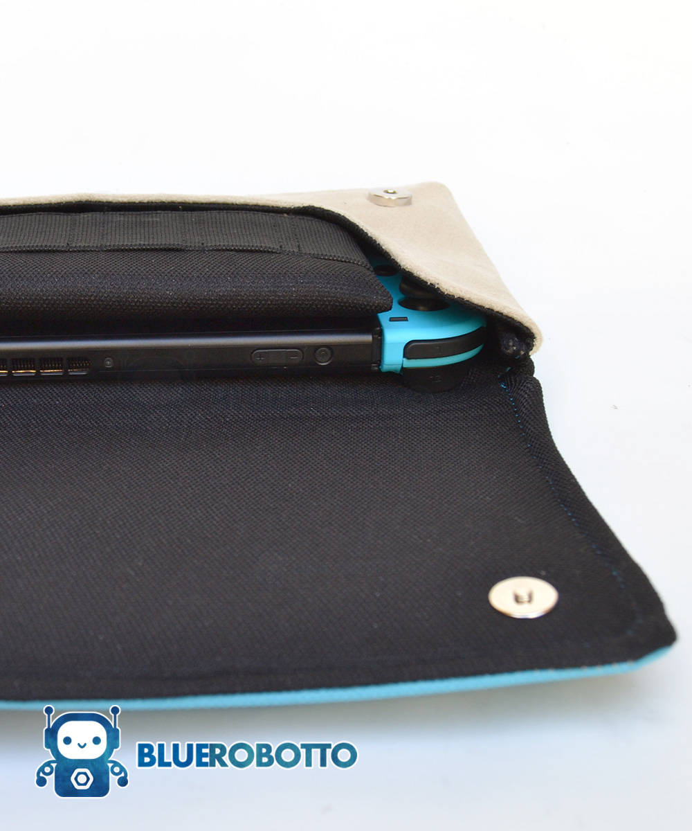 The case boasts an extra component (or pocket) to add an extra layer of protection to your Nintendo Switch Screen, which is definitely nice as I would probably throw a fit if I got a scratch on mine. The design is embroidered which adds to the quality of the case. With custom items such as these, screen printing just sometimes feels…cheap. The embroidery adds a nice aesthetic to the case, as well as the addition of the cute belt (I need to get a mini Master Sword to tuck in to it.